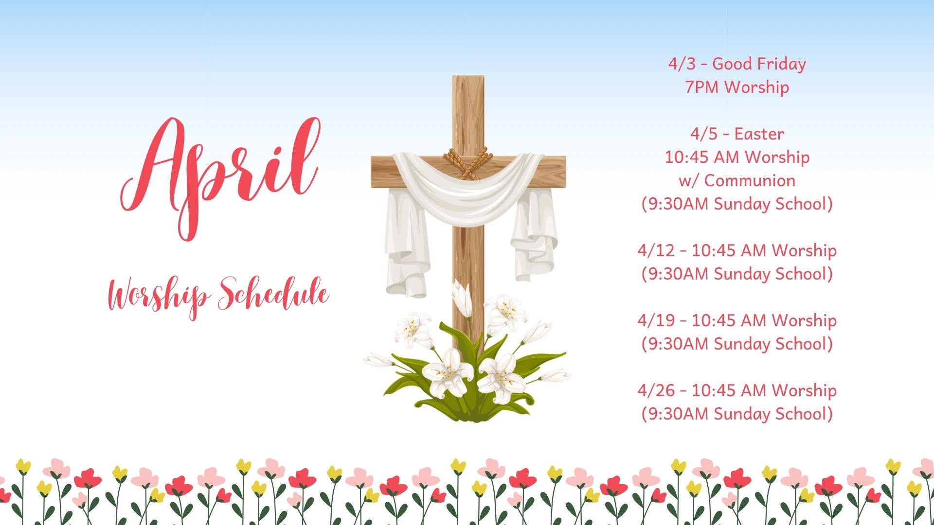 Sunday Worship Service is at 10:45am